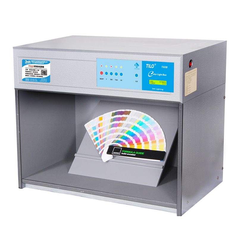 T60B color light booth is equipped with 4 light sources. Colors appear differently under different lighting sources. To avoid/reduce the assessment error when performing color contrast, we can make use of a Light Booth / Viewing Booth/Color Light Box to simulate different light sources to obtain an objective assessment of color and color difference, anytime, anywhere.